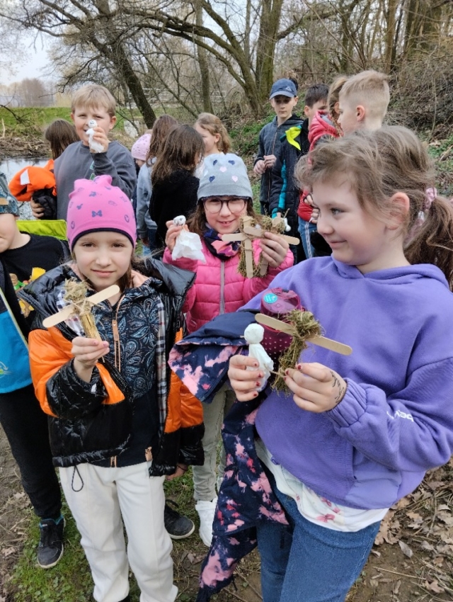 Také jsme si užili sportovní aktivity na hřišti, různé hry a soutěže. Ve čtvrtek 21. 3. jsme se byli rozloučit se zimou a přivítat jaro. Děti si vyrobily moreny a ty pak naházely do potoka s přáním šťastné cesty.