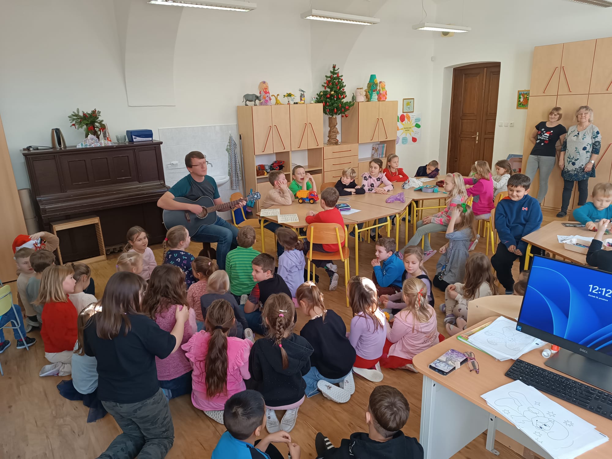 Krásnou vánoční atmosféru ještě více zpříjemnila hra na kytaru pana učitele Martina Melechovského. Děkujeme mu za milé hudební zpestření a příjemné chvíle, které nám vykouzlily úsměv na tváři.