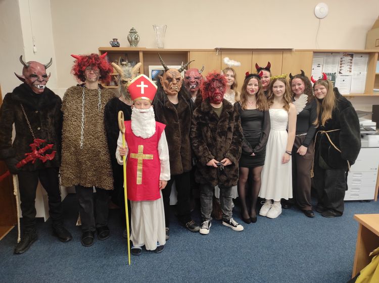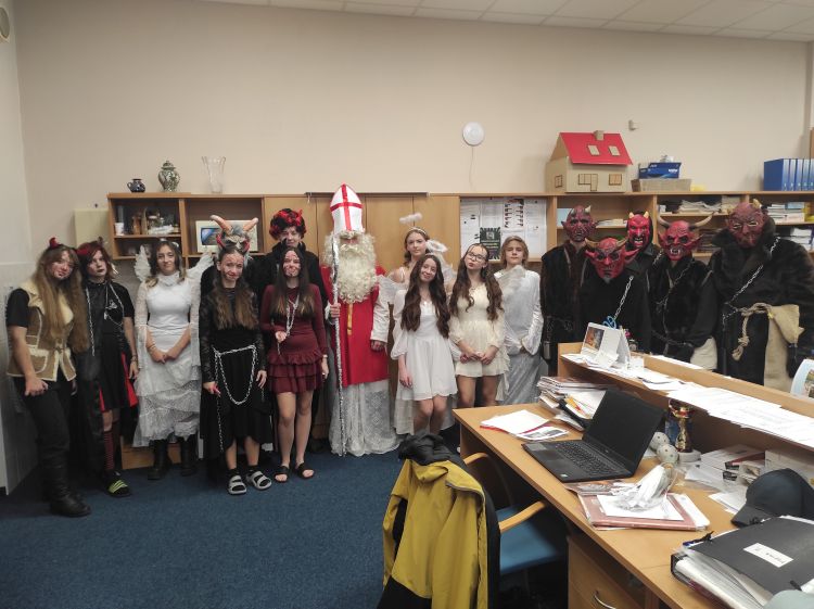 Svatý Mikuláš, svatí andělé a nesvatí čerti prošli naší školou první adventní pátek. Do ulic naší školy vyšli po druhé vyučovací hodině a s každou další vyučovací hodinou rostl počet zmalovaných dětí, kantorek a kantorů. Ty nejvíce zmalované děti se začínaly podobat čertům. Moc pěkné bylo pozorovat během dopoledne děti, jak hodnotí a porovnávají úroveň andělsko-čertovského nadělení na obličeji. Byla to příjemná akce, tradice oslavená na školní poměry klidně, poučení i radost pro děti. Takže díky Vám za mikuláše – Mikuláši, andělé a čerti.