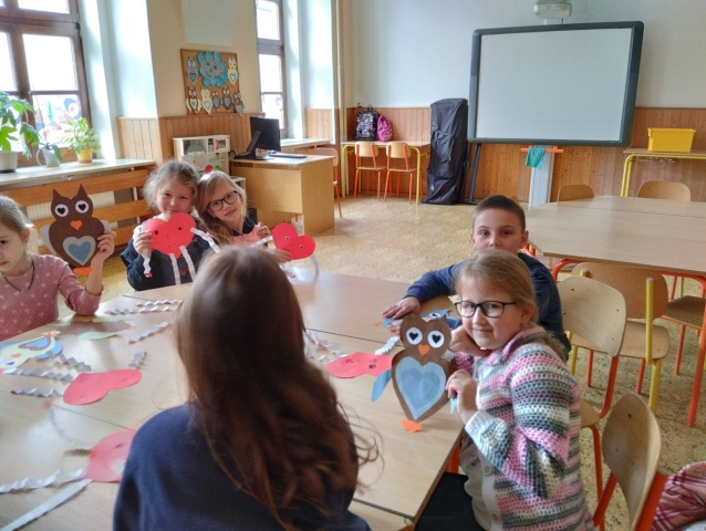 Když jsme ve třídě, malujeme, stříháme a vyrábíme. Například prvňáčci vyrobili krásné kočičky, a i ostatní se přičinili různými výrobky.